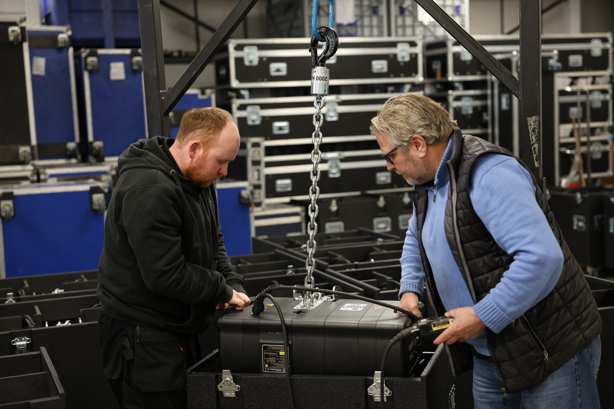 TSL who are full members of - LEEA (The Lifting Equipment Engineers Association) are the first UK rental house to take delivery of the new Extra-Large Frame 2000kg hoists which boast a single chain (single fall) configuration. This partnership marks a significant milestone in advancing the quality and safety standards within the entertainment technology sector and TSL’s growing inventory of their lifting technology equipment.